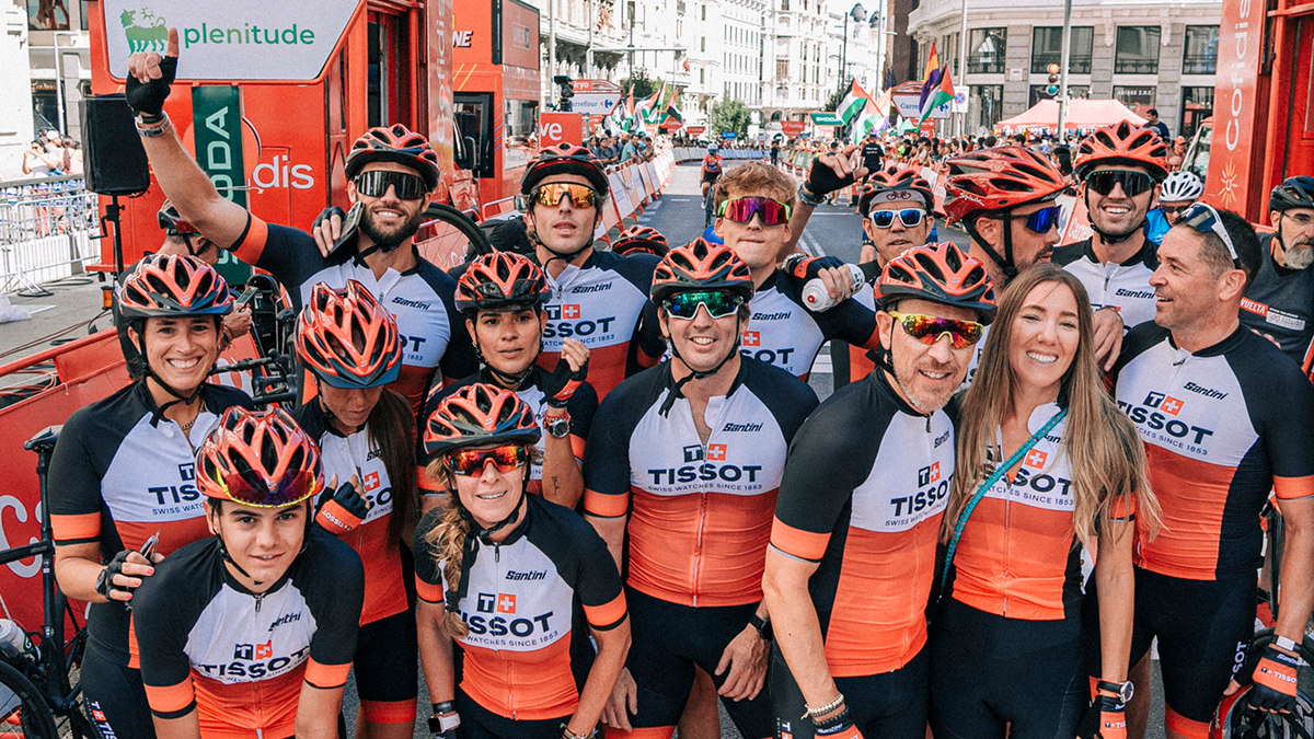 Gran día el que vivimos el pasado domingo 8 de septiembre en Madrid, con la celebración de la etapa final de La Vuelta con Tissot, cronometrador oficial de la prueba. Nuestros invitados pudieron disfrutar del recorrido de la contrareloj individual como auténticos ciclistas profesionales, y hasta pudieron pedalear junto a ellos mientras calentaban antes de su salida.