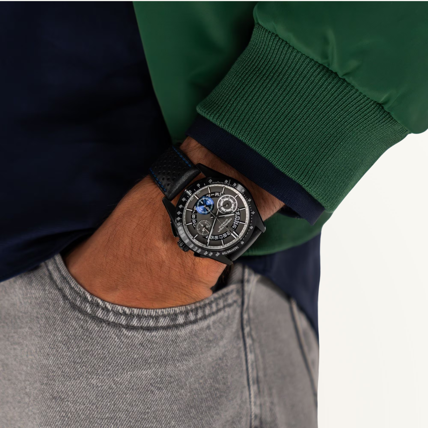 Con un estilo atemporal y novedoso, el Jazzmaster Performer Auto Chrono 42 mm encarna una versión contemporánea del reloj de uso diario sin perder su actitud deportiva distintiva. Gracias a los tres contadores del cronógrafo, que muestran la hora en el anillo exterior, podrá controlar las horas, los minutos y los segundos transcurridos.El Jazzmaster Auto Chrono 42 mm, con una elegante caja con revestimiento PVD y correa de piel negra, cuenta con una reserva de marcha de 60 horas y movimiento H-31. Descubre nuestra colección de relojes cronógrafos.