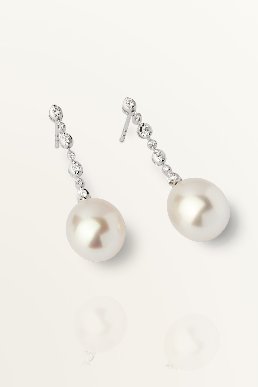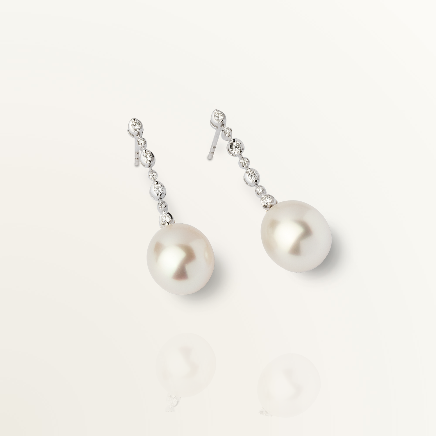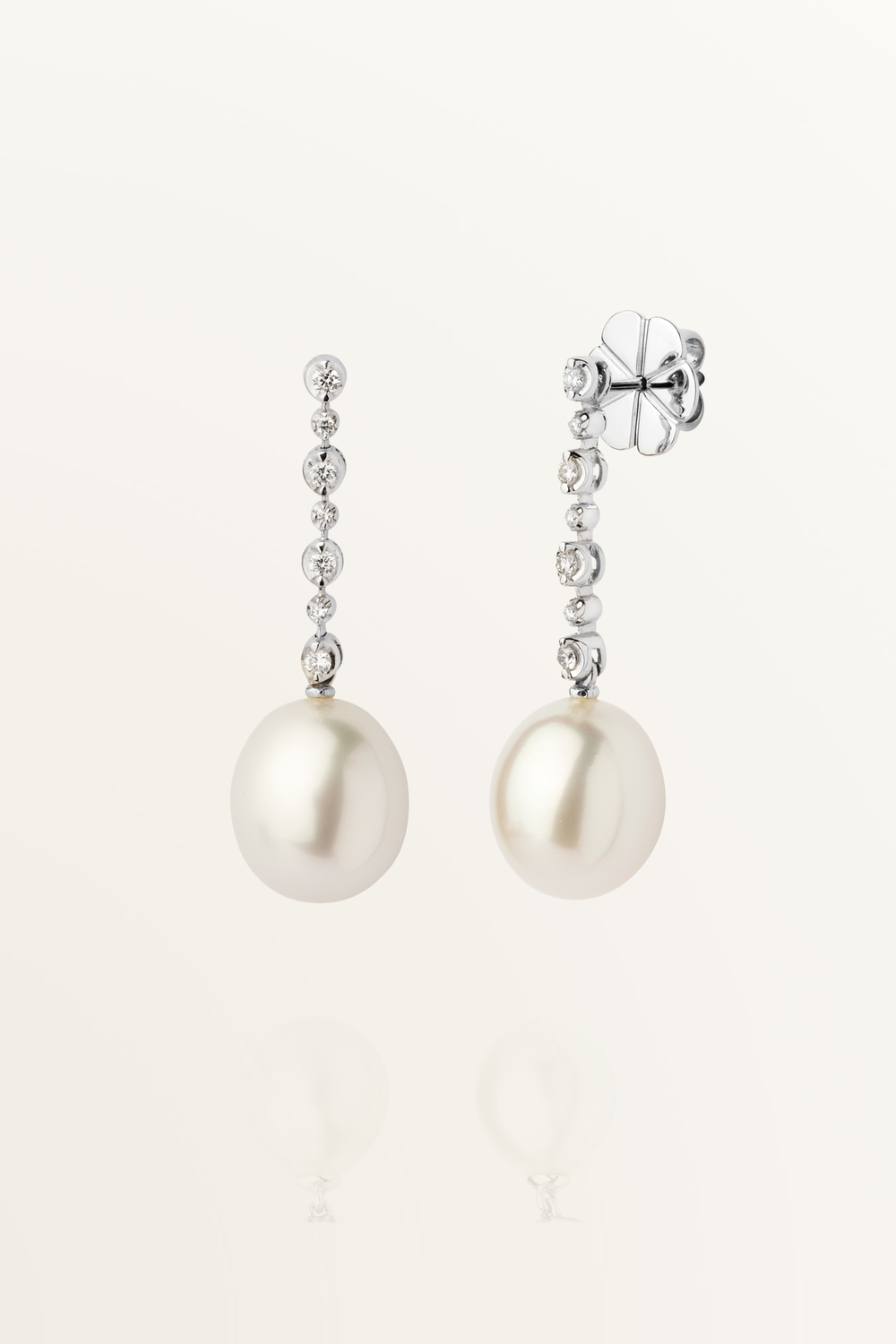 Pendientes en oro blanco con perla y diamantes talla brillante de 0,25cts en total