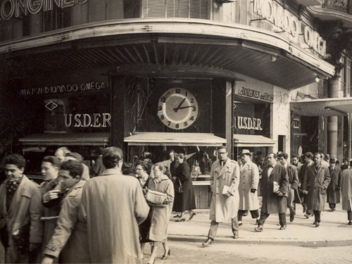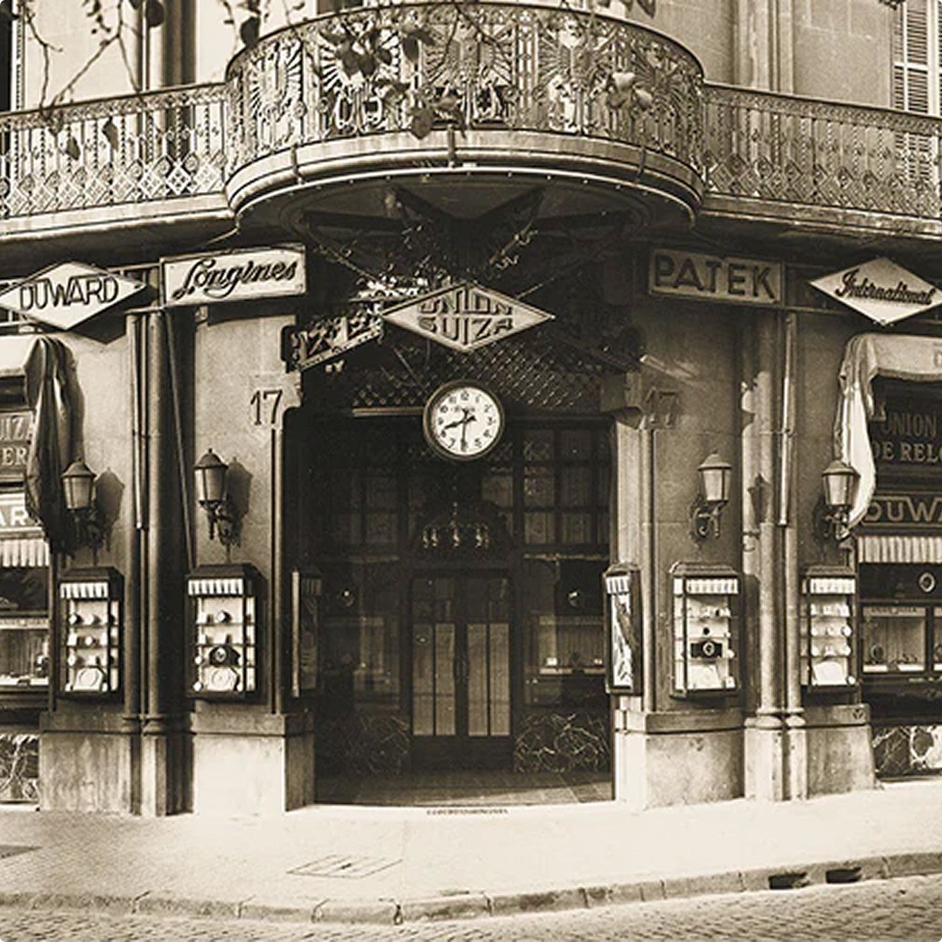 En 1929, Carlos Vendrell viaja a Suiza y queda cautivado por la excelencia técnica de su relojería. De ese viaje nace una nueva visión: traer a España las grandes firmas suizas, convirtiéndose en pionero en su distribución. La tienda de Rambla Catalunya se reinaugura bajo un nuevo nombre: Unión Suiza, símbolo de esta conexión internacional.