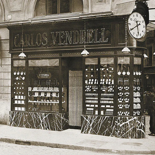 Todo empieza en 1840, cuando Jaume Vendrell abre un comercio de joyería y taller junto a la parroquia del Carmen, en una Barcelona aún por imaginar. Poco después, su hijo Carlos Vendrell Castellà —también regidor del Ayuntamiento de Sants— inaugura una joyería en ese barrio, entonces aún independiente de la ciudad.
