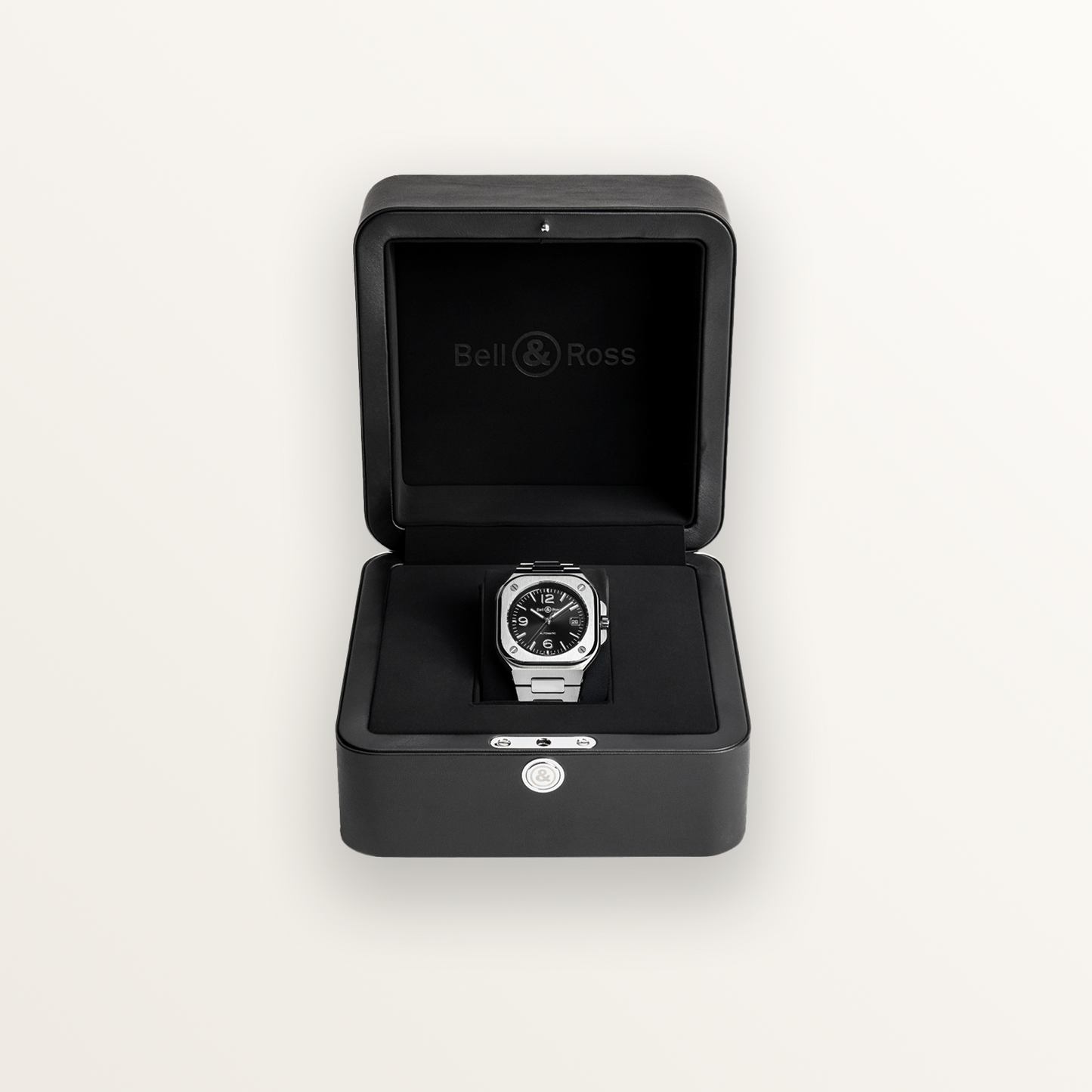 El BR-05 forma parte de la familia de relojes con caja integrada: la pulsera se fusiona con la caja para crear una pieza unificada.