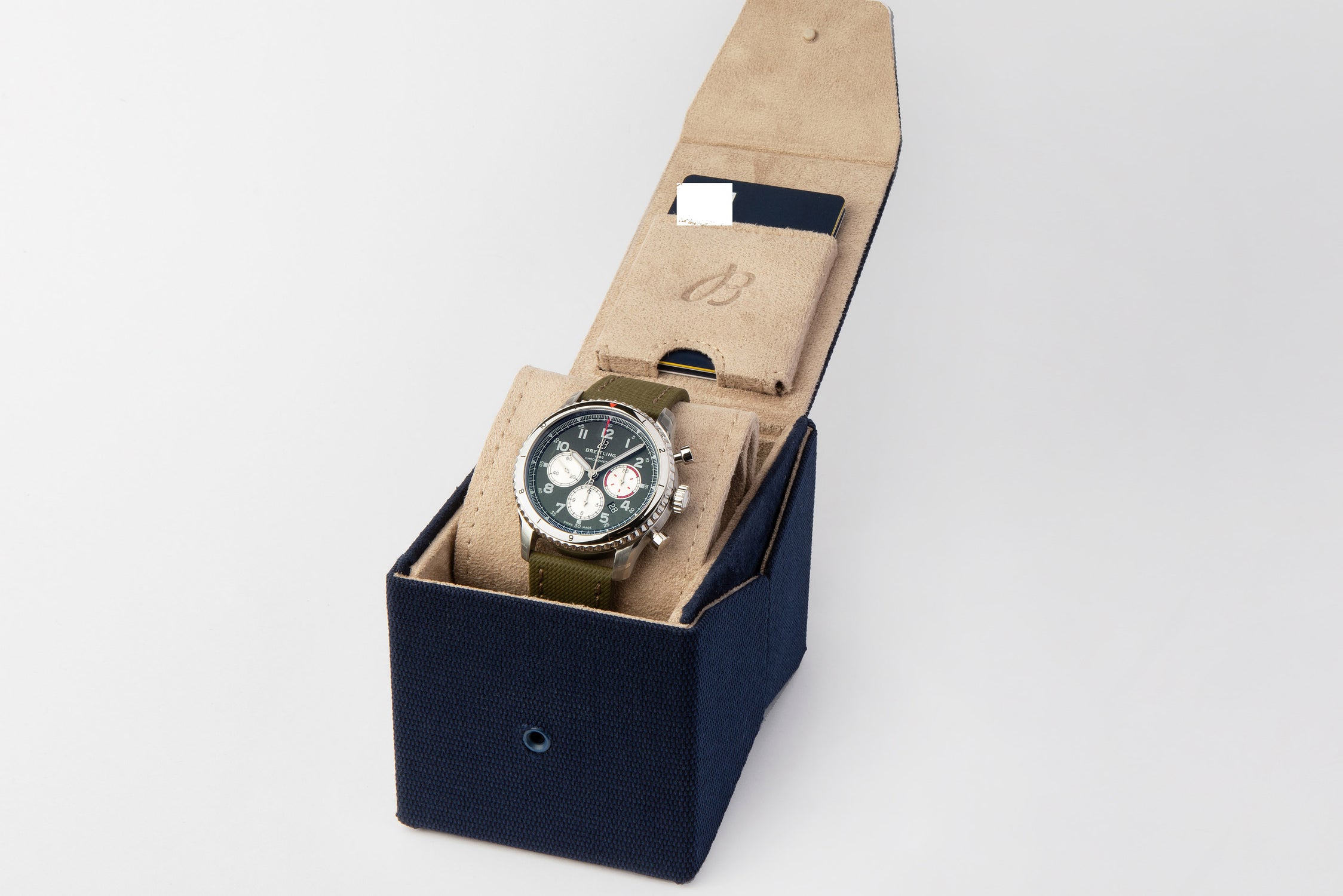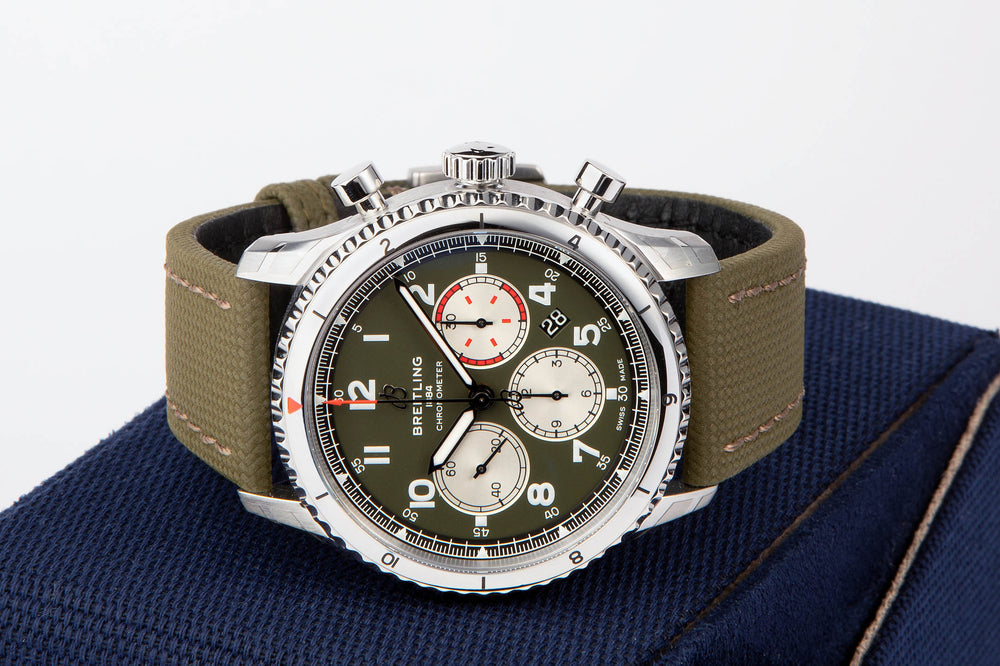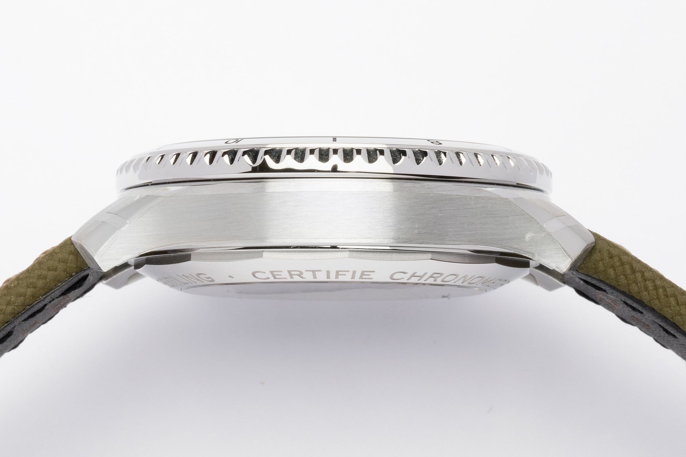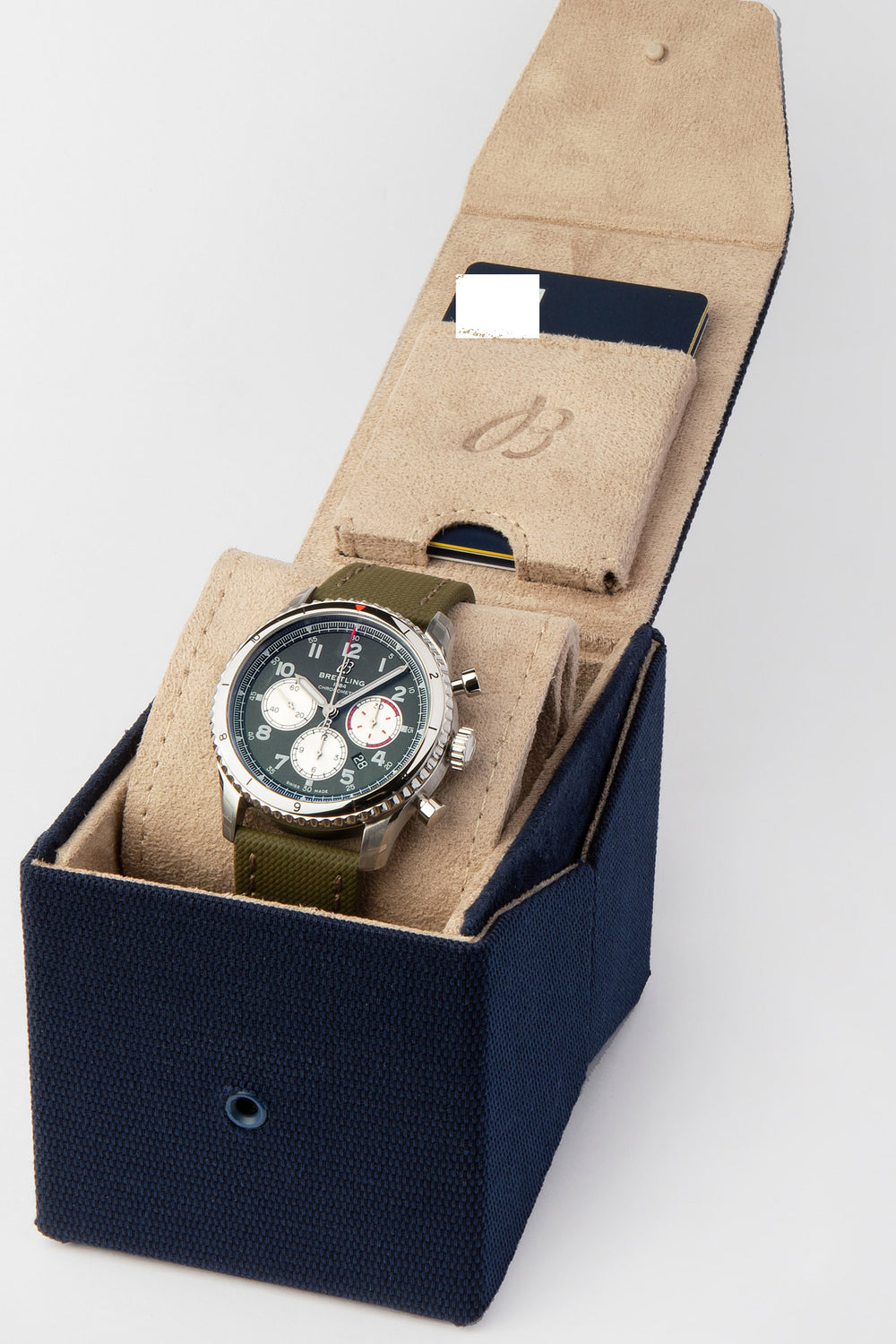 Certified Pre-Owned: Relojes certificados Caja de acero de 43mm. Movimiento mecánico automático Breitling B01 Esfera verde Cristal de zafiro Cronógrafo Fecha Resistencia al agua: 10 ATM Diámetro: 43mm Grosor: 13,97mm Brazalete de piel con hebilla ardillón Reloj sin usar, con estuche y documentación original. Garantía oficial Breitling Internacional activada 06/05/2030 PVP: 7.900€ OFERTA: 5.080€