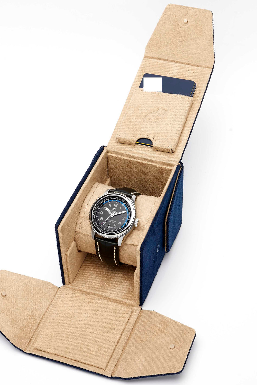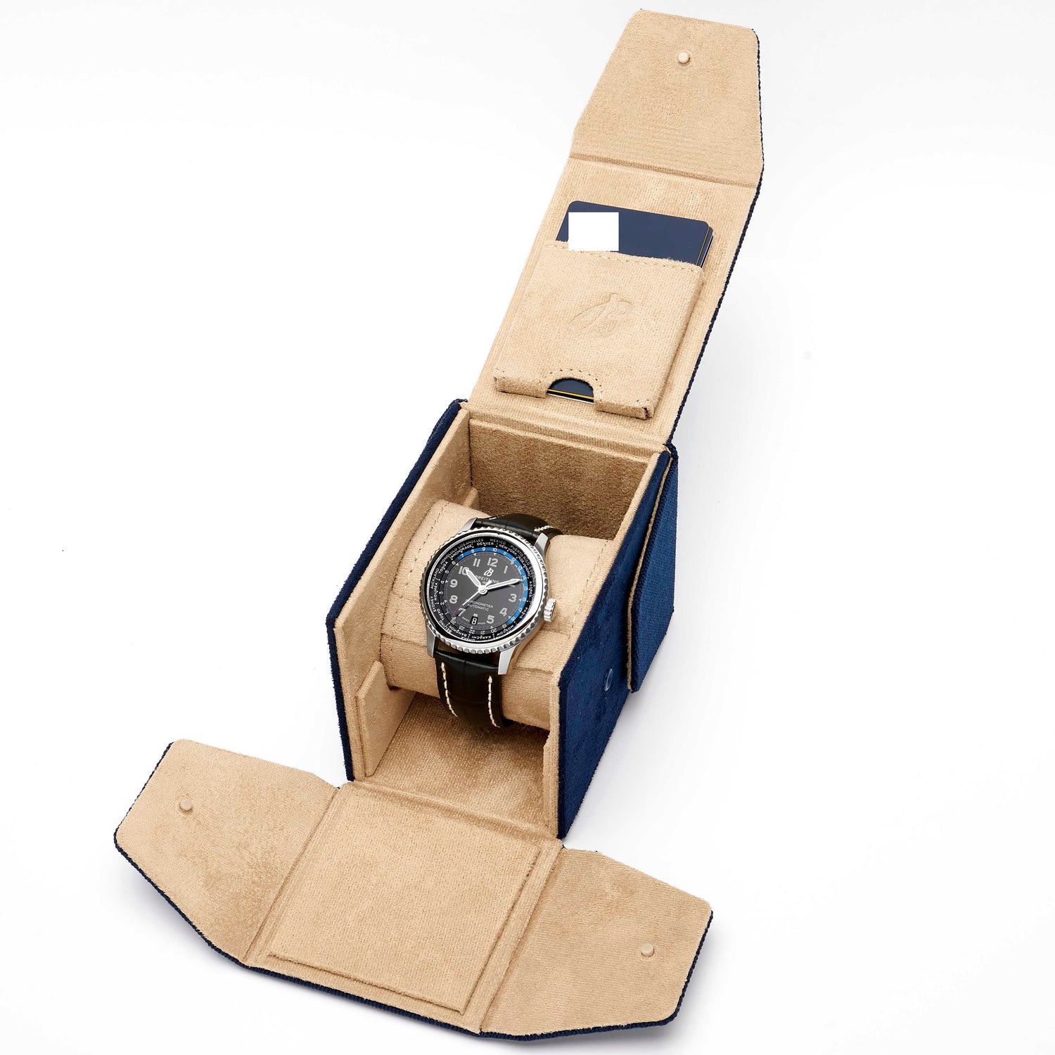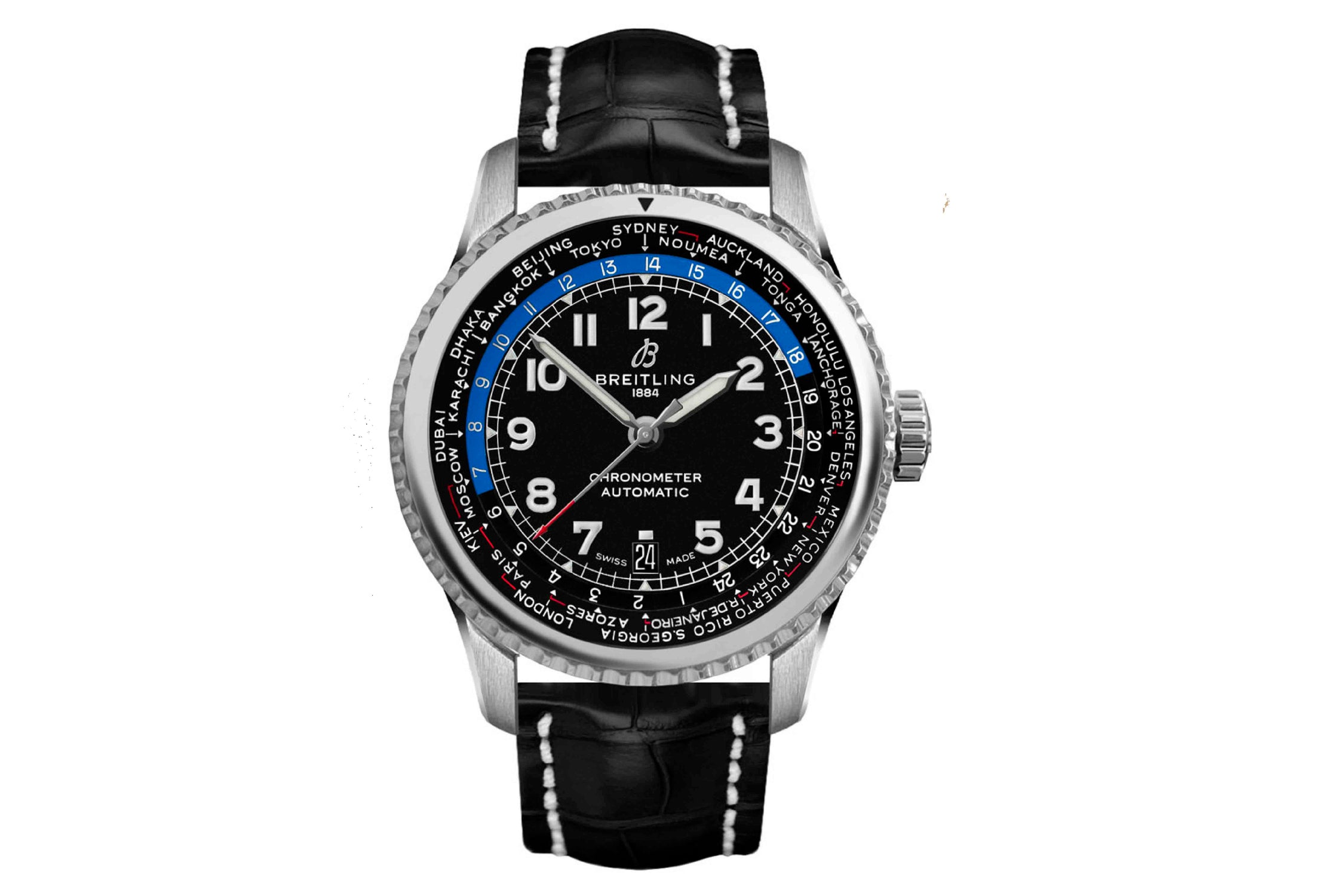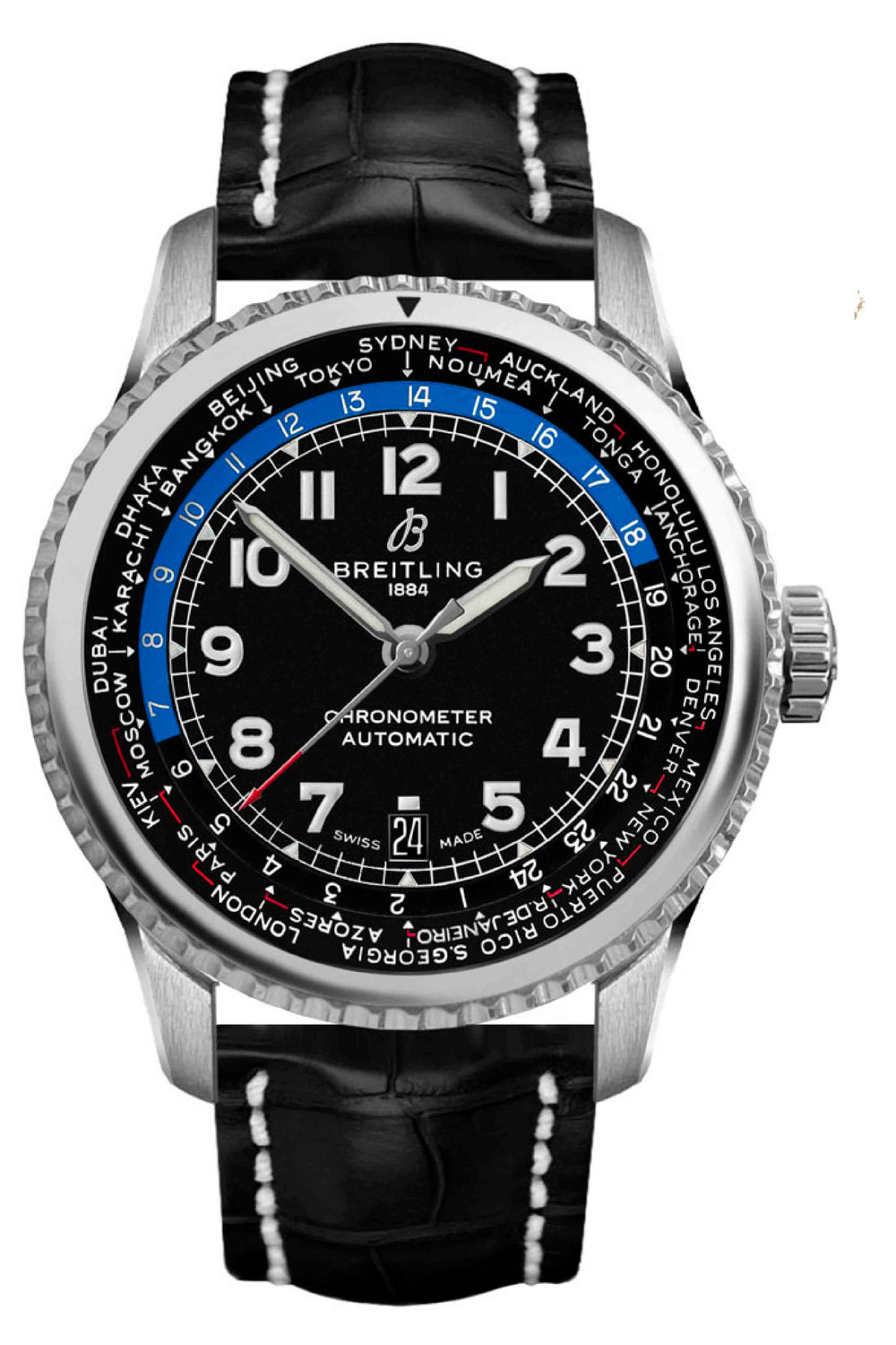 Certified Pre-Owned: Relojes certificados Caja de acero de 43mm. Movimiento mecánico automático Breitling calibre B35 Fecha Horas mundiales Esfera negra Cristal de zafiro Resistencia al agua: 10 ATM Diámetro: 43mm Grosor: 14,35mm Brazalete de piel con hebilla ardillón Reloj nuevo, sin uso, con estuche y documentación original. Garantía oficial Breitling Internacional PVP: 8.000€ OFERTA: 6.080€