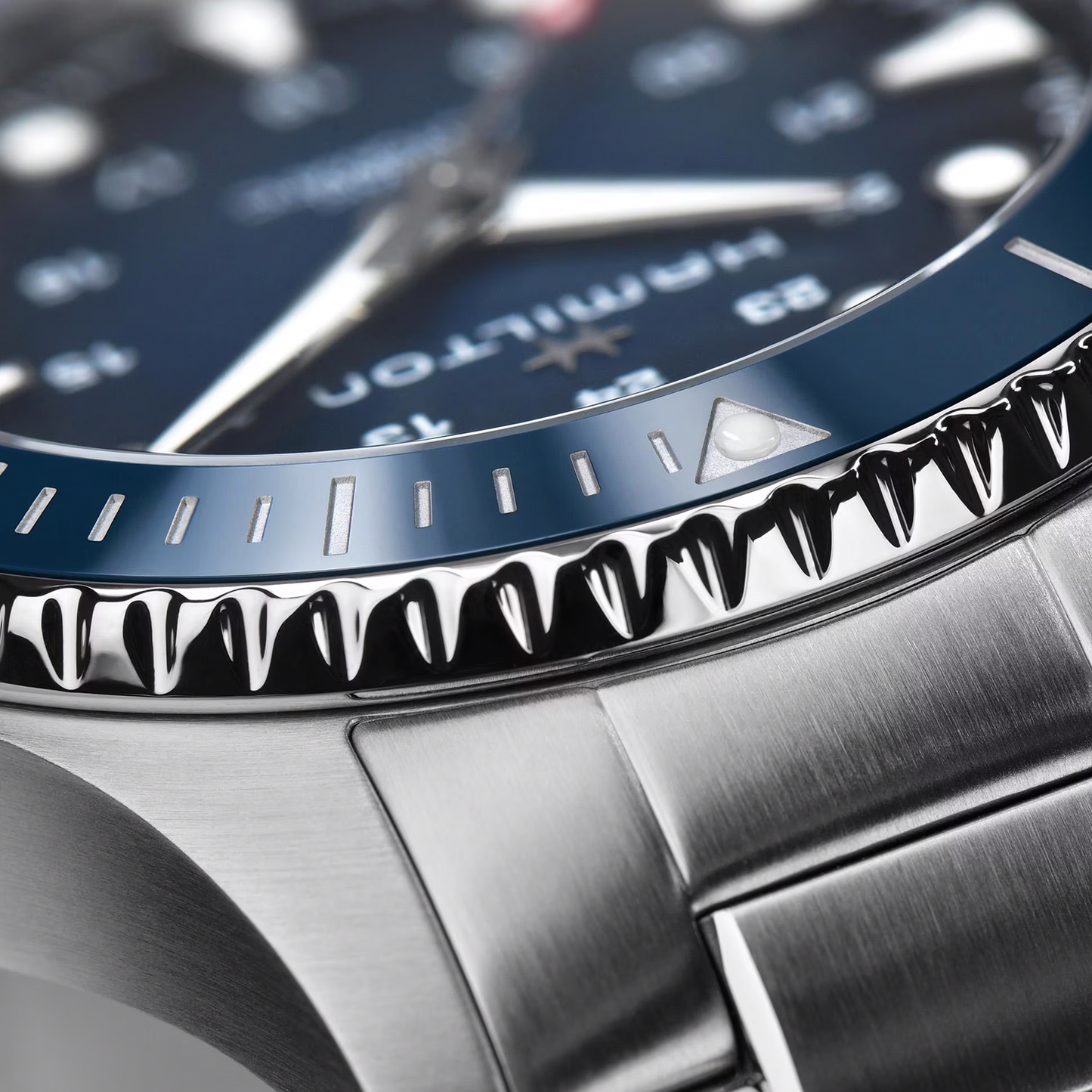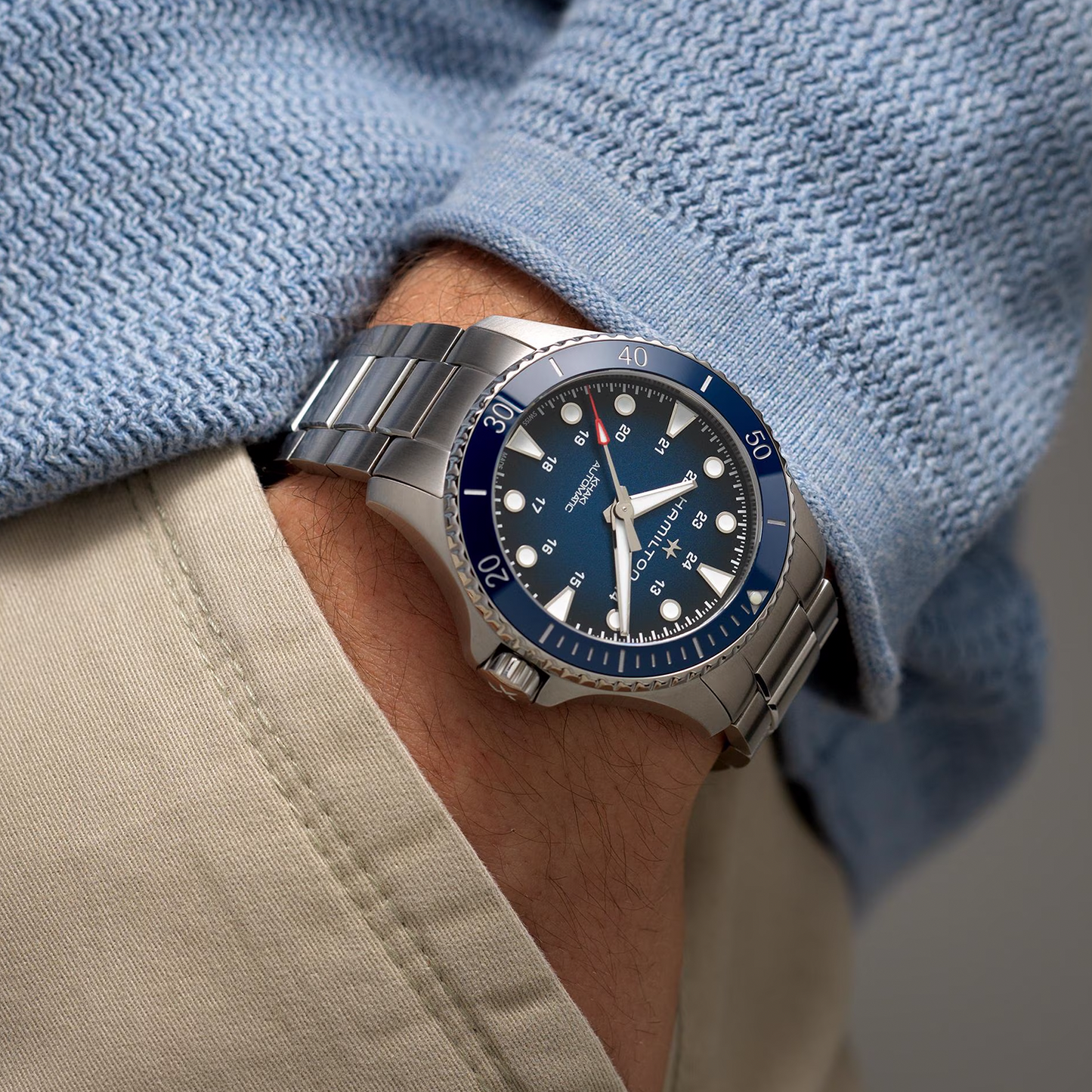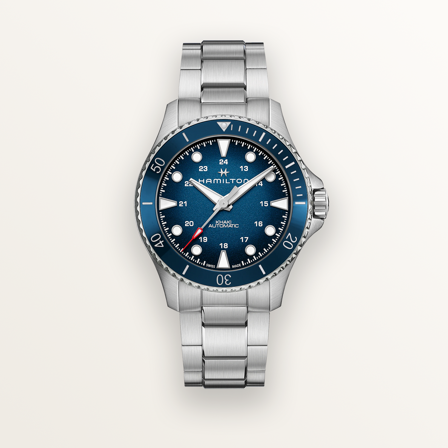 El lujo se combina con el deporte en este reloj de inspiración acuática diseñado tanto para el hogar como para una cabaña junto al mar o para explorar los océanos. El bisel de cerámica presenta números grabados de forma precisa y aporta un estilo de alta mar a este Khaki Navy Scuba Automatic, al tiempo que lo protege de los elementos corrosivos, como la arena y el agua de mar. Este reloj de alto rendimiento, que cuenta con una caja de 43 mm, una resistencia al agua mejorada hasta los 30 bares (300 m) y una esfera ultralegible, está listo para todas sus aventuras acuáticas, ya sean bajo el agua o sobre ella.