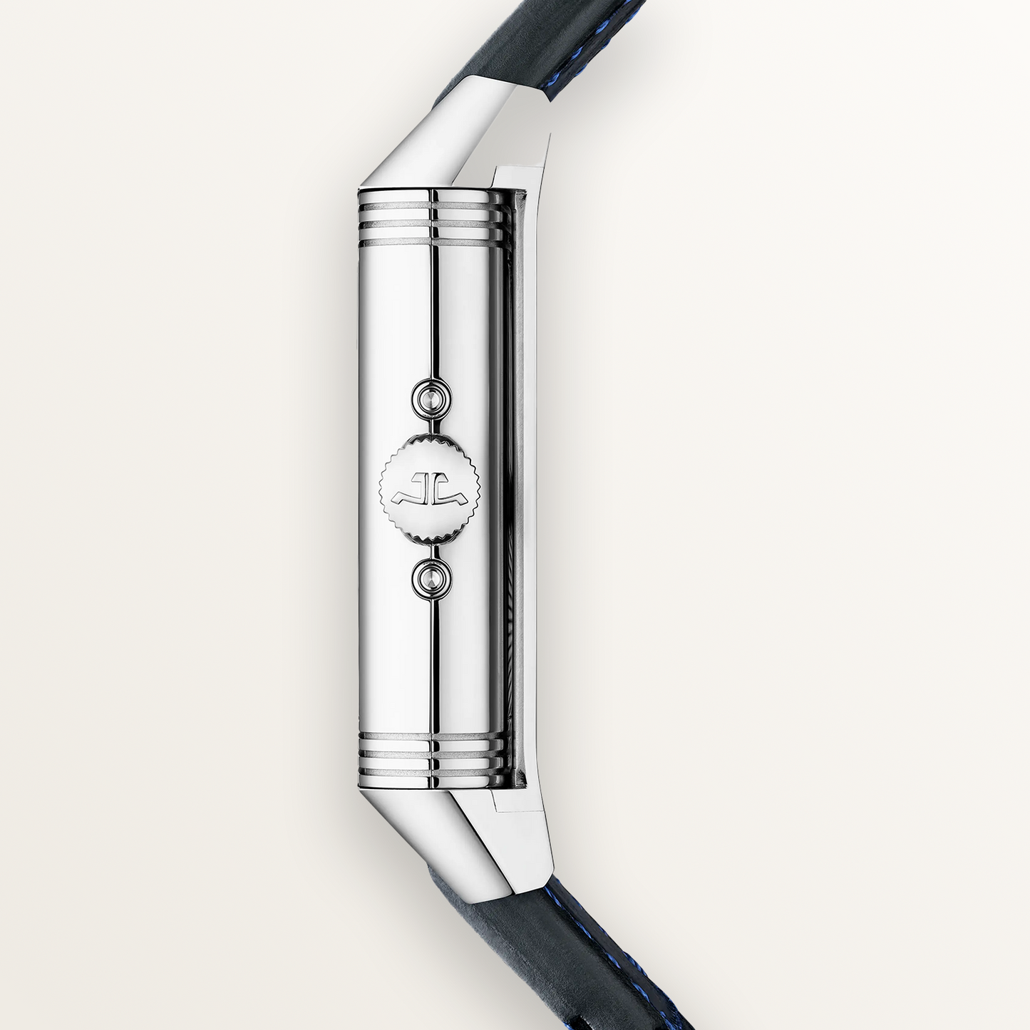 Creado en 1931, el icónico reloj se ha enriquecido con un nuevo modelo de acero inoxidable que incorpora dos caras tan elegantes como llenas de contrastes. Además del concepto Duoface, que ofrece una 2.ª zona horaria, este reloj equipado con el calibre 853 de la Manufactura muestra un calendario completo. En sintonía con los códigos estéticos de los primeros modelos (emblemáticos gallones, indicadores aplicados, manecillas Dauphine), la esfera granulada de la parte frontal da paso a una nueva parte trasera, absolutamente contemporánea. En la esfera con rayos de sol de color azul intenso, los dobles indicadores que rodean el minutero crean una elegante decoración, donde se ha colocado un nuevo disco que marca la noche y el día. El Tribute Duoface Calendar incluye dos pulseras fácilmente intercambiables con un fuerte carácter vintage. Diseñadas por el destacado fabricante de botas argentino Casa Fagliano, las correas, una de ellas hecha completamente en piel y la otra, en dos materiales, evocan el espíritu del polo del reloj Reverso.