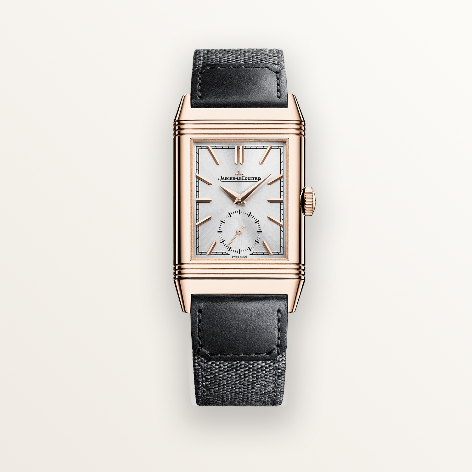 Equipado con el calibre 822 de la Manufactura, y con cada uno de sus componentes cuidadosamente decorados, el Tribute Small Seconds marca el paso del tiempo elegantemente. Únicamente en su caja de oro rosa reversible, de tan solo 7,56 mm de grosor, hay más de 50 componentes, lo que da prueba de su complejidad y de las horas invertidas en su diseño. El color plateado de su esfera con acabado de rayos de sol realza los índices aplicados, las manecillas Dauphine y el segundero pequeño. Bajo esta esfera, aparentemente sencilla, que rinde homenaje a los primeros modelos de los años 30 del siglo XX, se oculta un que puede personalizarse con una fecha, un tema, unas iniciales, etc. Dos correas intercambiables, una de ellas de dos materiales (piel y lona), diseñada por Casa Fagliano, y la otra de piel de aligator, permiten al propietario del reloj cambiar de estilo fácilmente siempre que quiera.
