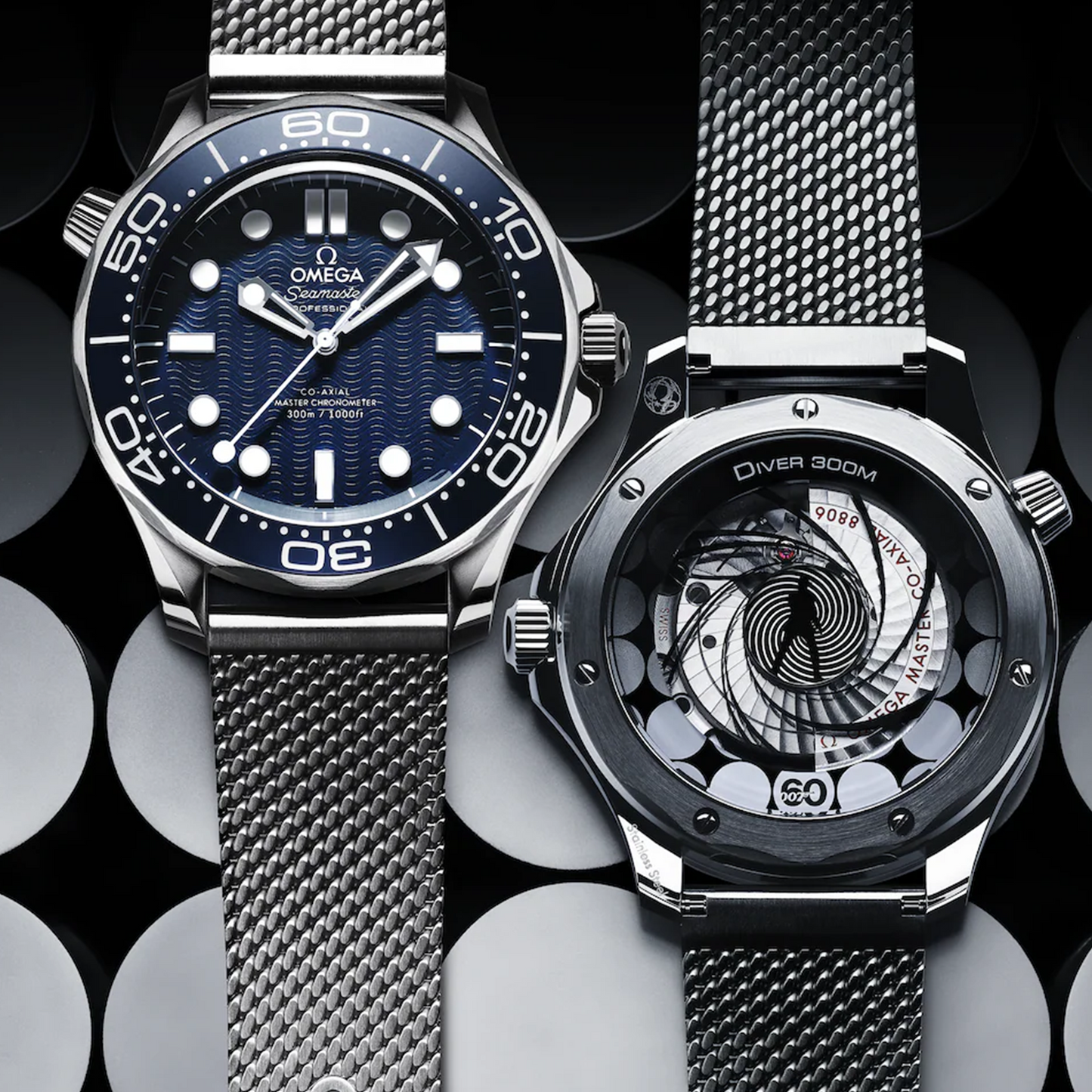 Lanzado en 2022 para celebrar el 60 aniversario de las películas de James Bond, este Seamaster Diver 300M de 42 mm de acero noble presenta una esfera de aluminio anodizado oxálico azul con diseño de ondas grabado con láser, inspirado en el Seamaster Diver 300M que llevaba James Bond en GoldenEye de 1995. El número 60 conmemorativo sustituye al tradicional triángulo invertido de la escala de inmersión.
