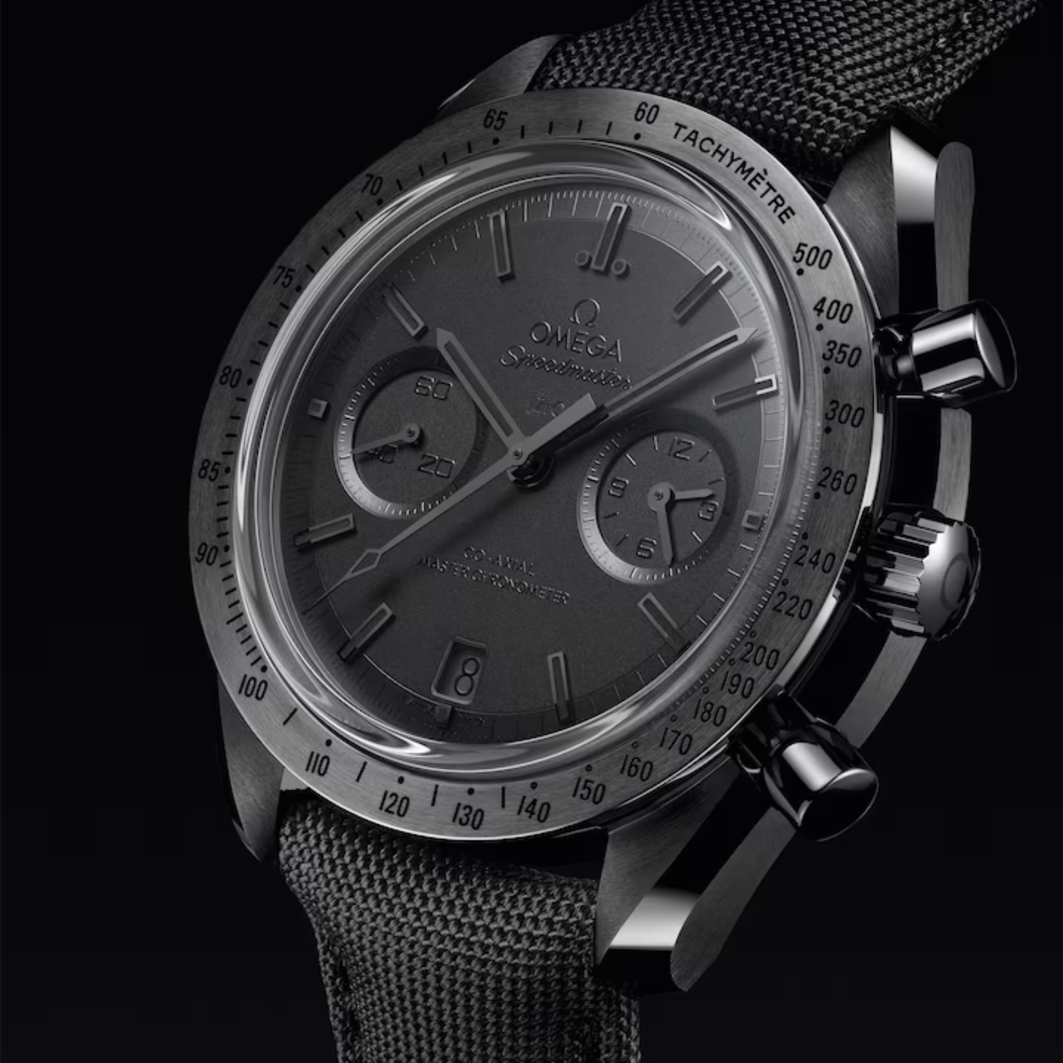 Rindiendo homenaje al legado de exploración espacial de OMEGA, este Speedmaster Dark Side of the Moon “Black Black” presenta una caja de 44,25 mm de cerámica negra pulida y cepillada. El bisel cepillado también está realizado con cerámica negra y cuenta con una escala taquimétrica grabada a láser que está rellena de esmalte Grand Feu negro.