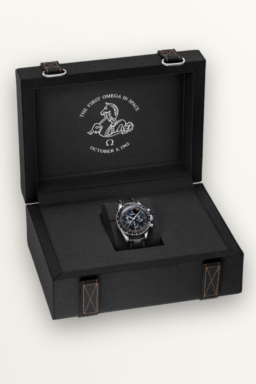 El 3 de octubre de 1962, el Speedmaster CK 2998 se convirtió en el primer OMEGA que se portó en el espacio, cuando el astronauta Walter Schirra llevó su modelo personal en la misión Sigma 7 del programa Mercurio. Esta versión puesta al día es un tributo a ese reloj pionero y recupera el mismo estilo Speedmaster de segunda generación dándole una forma moderna.