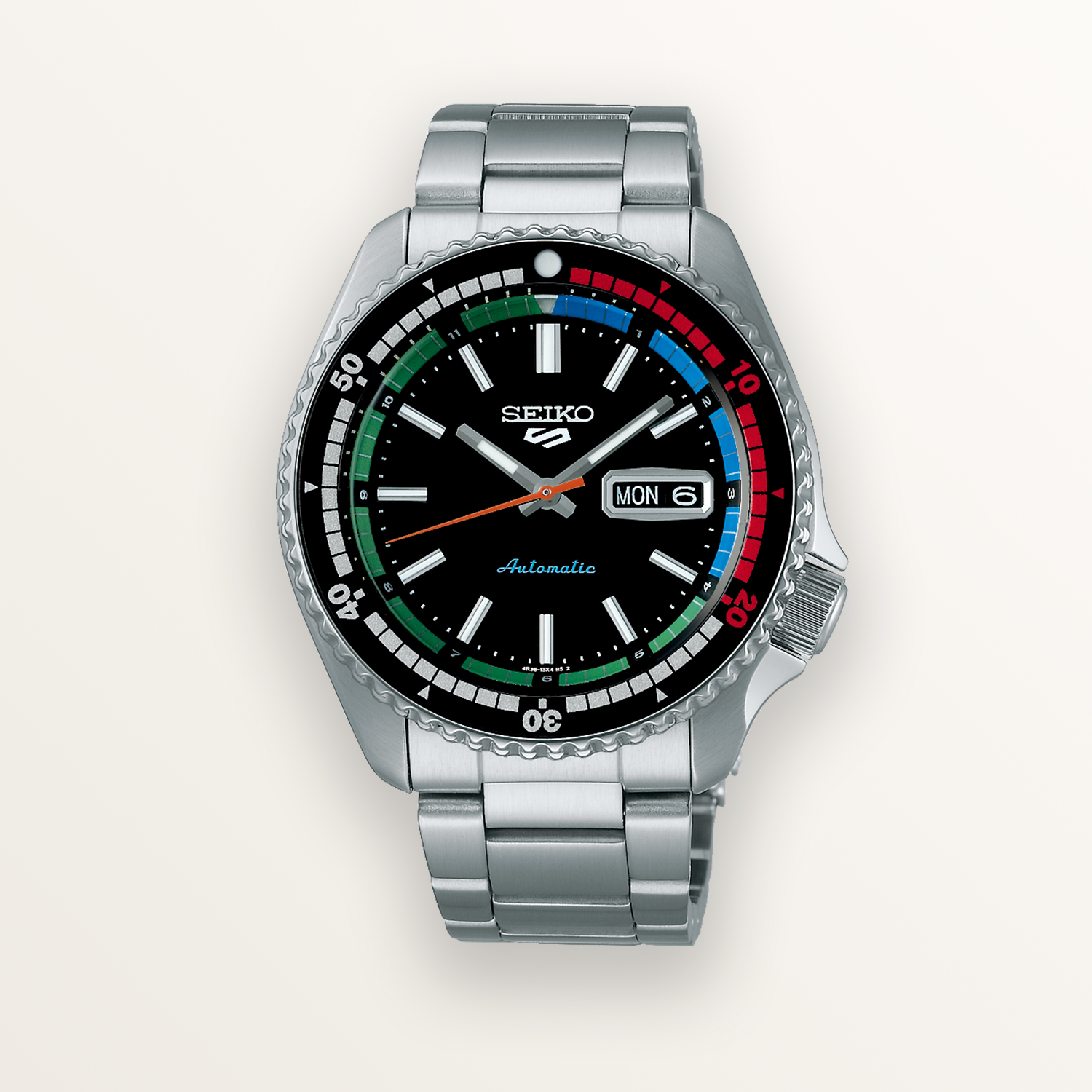 Es uno de los 3 relojes SKX Sports Style que rinden homenaje a la Colección Seiko 5 Sports de 1969, que además de destacar por su fiabilidad y durabilidad, ofrecían una variedad de estilos y diseños. Los nuevos relojes de edición especial reflejan el color de tres relojes históricos populares. Cada creación con una esfera plateada, negra o naranja tiene un bisel que sigue el diseño del reloj original de la Colección de 1969. Combinan estos homenajes clásicos con la legendaria caja SKX, que tiene forma icónica con protectores de corona y un bisel giratorio unidireccional. Cada uno viene en una pulsera de acero inoxidable de tres filas.