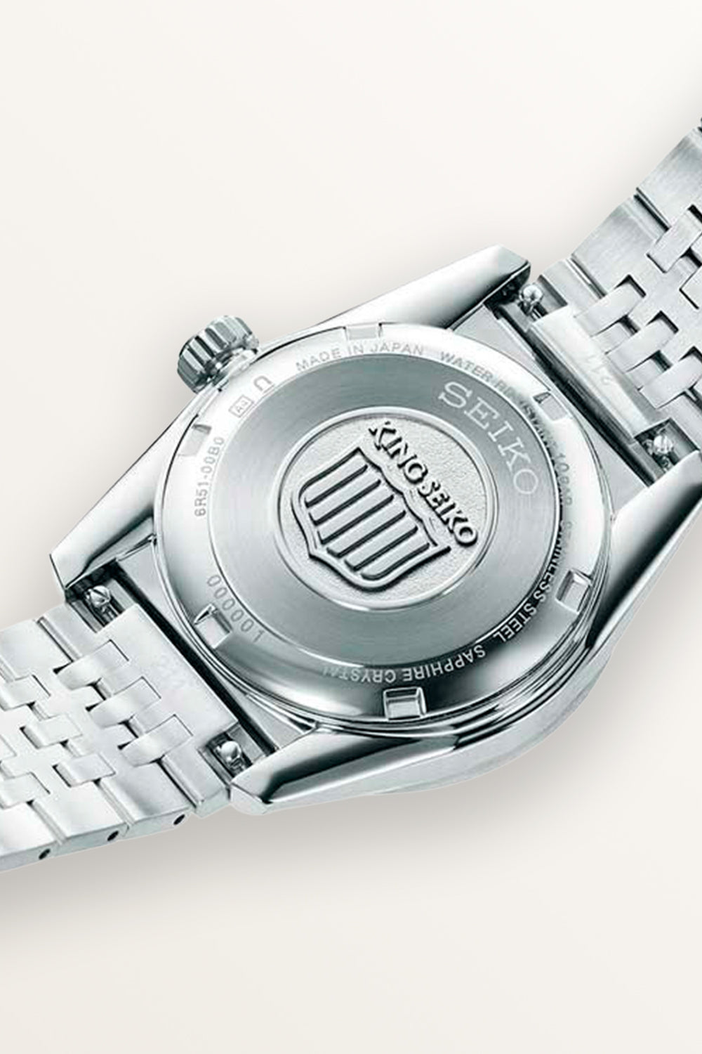 Modelo KSK Calibre 6R51. La serie «KSK», que existe desde la reaparición de la colección en 2022, está ahora disponible en un sencillo diseño de tres agujas con una caja de 36,1 mm, la más pequeña de los modelos King Seiko actuales. La caja cuenta con pulido espejo y acabado hairline para crear un diseño compacto pero afilado con crestas prominentes, una característica de la serie «KSK».