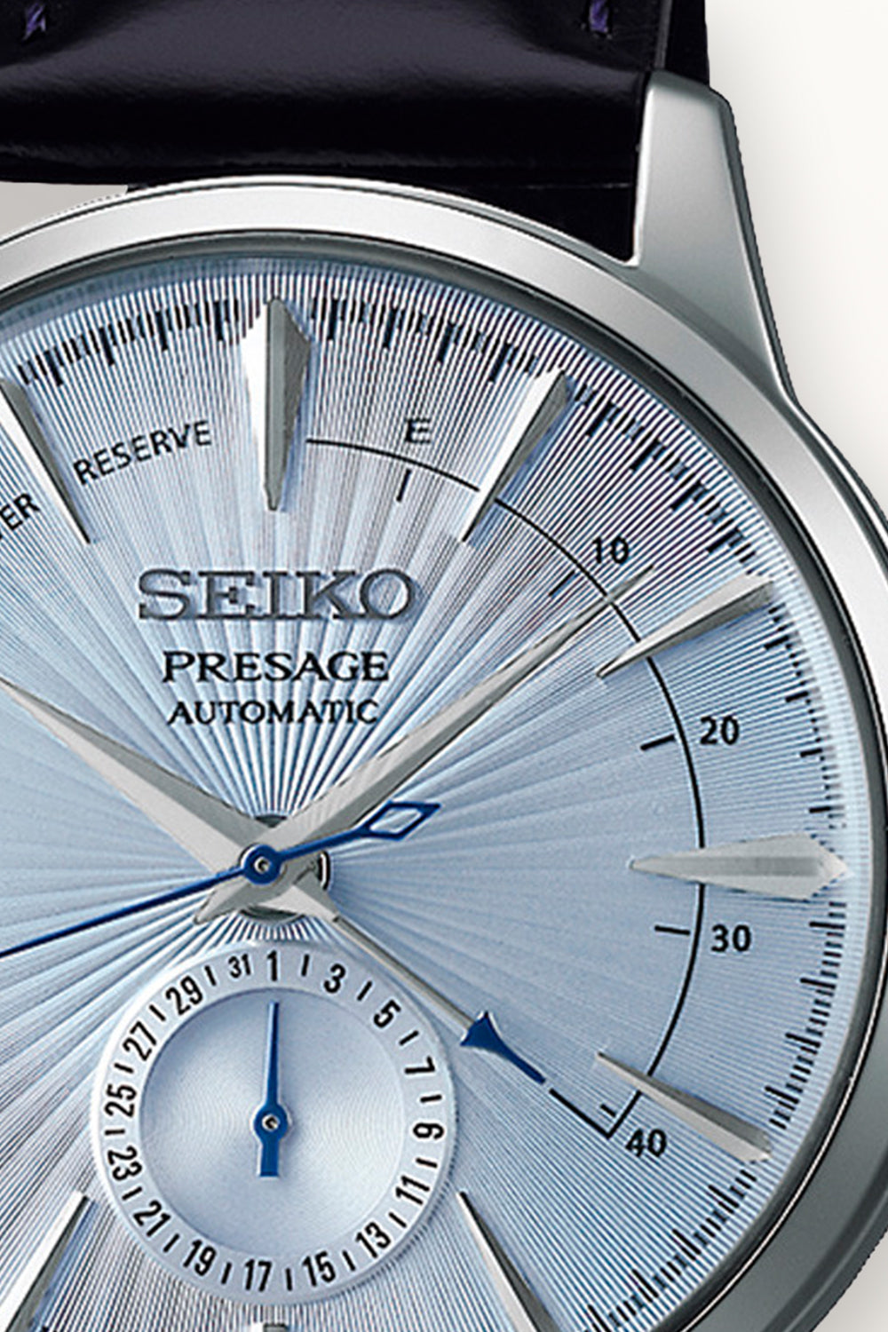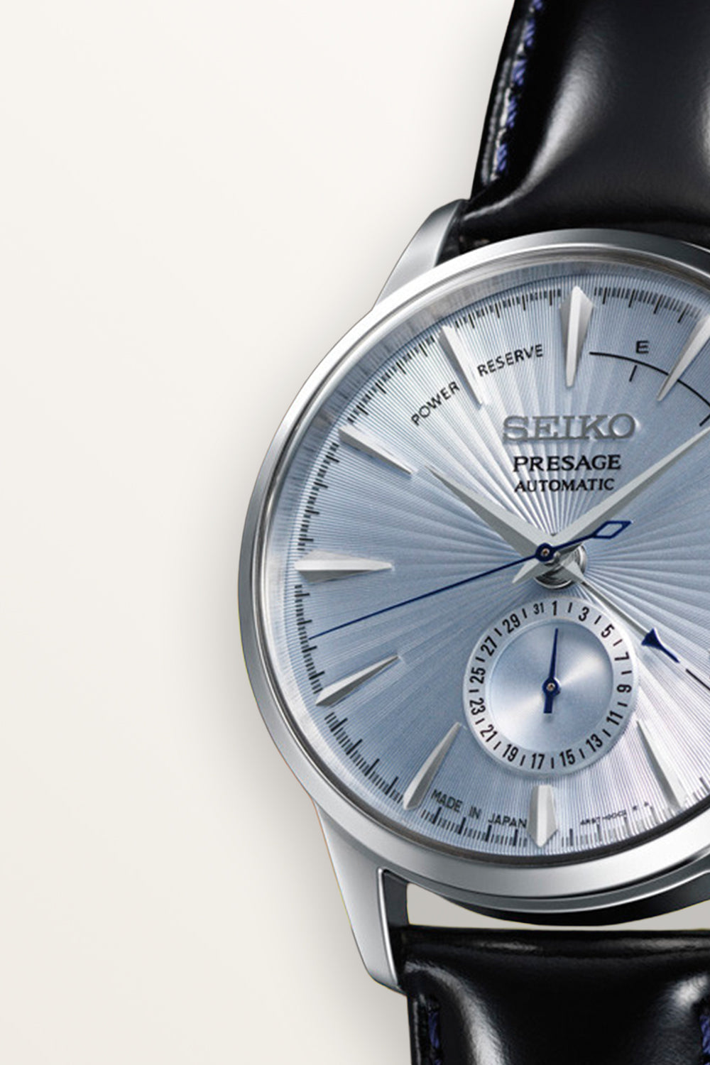 Colección de relojes mecánicos inspirada en el glamour de un bar de cócteles. ¿Manhattan, Martini o Margarita? Cada reloj inspirado en un cóctel diferente y cada uno con su propio esquema de color. Se utilizan dos calibres diferentes ofrece la delgadez y simplicidad de un diseño de tres agujas, mientras que el 4R57 ofrece además un indicador central de reserva de marcha. Su belleza resplandeciente se ve reforzada por siete capas de acabado brillante de la esfera y por la claridad de los cristales de forma de caja. Las manecillas son delicadamente curvadas por artesanos calificados para lograr un perfil más delgado de la caja."