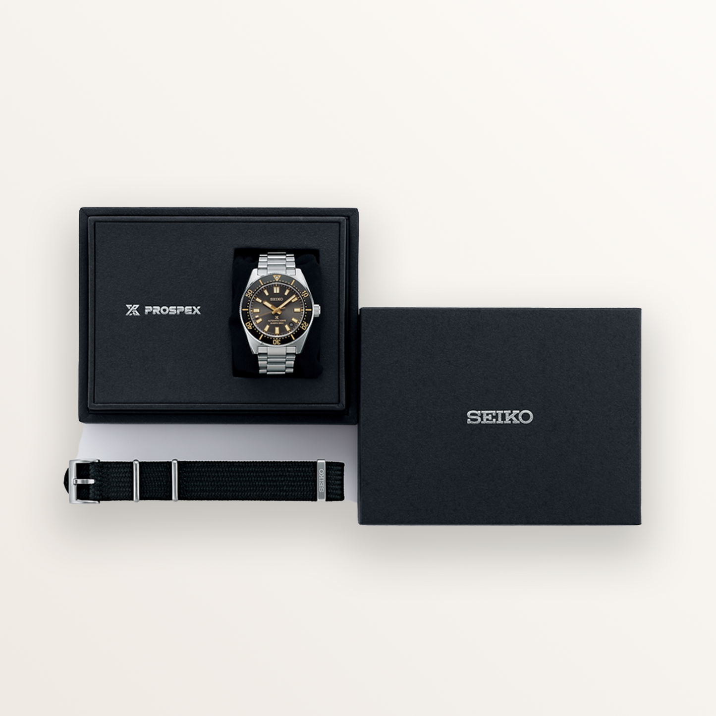 Seiko presenta tres nuevas creaciones Prospex que son modernas reinterpretaciones del reloj de buceo Seiko original de 1965, cada una de ellas mejorada con 300 metros de resistencia al agua y una reserva de marcha de tres días.Con calibre 6R55 y esfera gris carbón este modelo de edición especial por el 100 aniversaario de la marca Seiko presenta más potencia, mayor resistencia al agua y legibilidad mejorada. El reloj de edición especial viene con una correa adicional fabricada íntegramente con botellas de plástico recicladas.