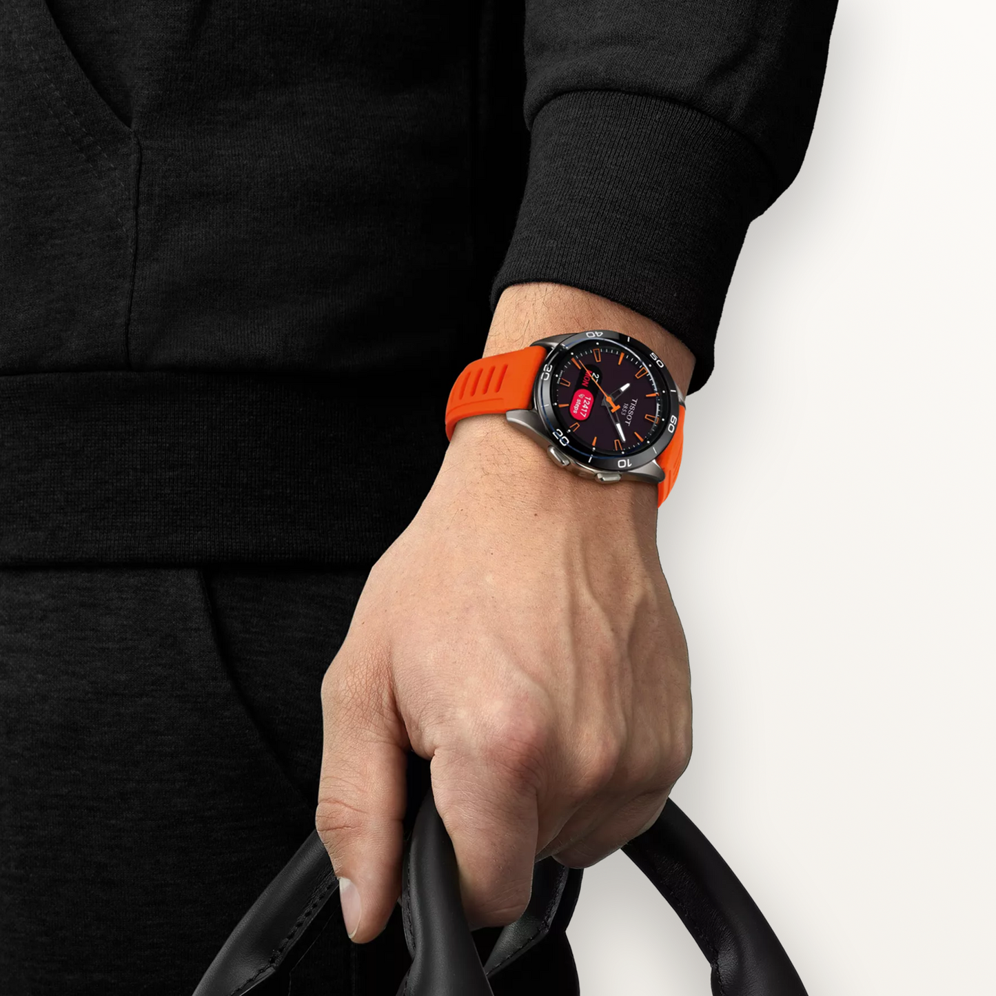 Combinando la artesanía suiza con la tecnología moderna, el Tissot T-Touch Connect Sport cuenta con un marco de titanio de 43 mm, y una pantalla táctil AMOLED, asegurando que la funcionalidad se combina con el estilo. Este reloj realiza un seguimiento de la frecuencia cardiaca, la distancia, la velocidad y las calorías, del mismo modo que garantiza notificaciones, para seguir el ritmo de su estilo de vida activo. Sumérgete más a fondo con su aplicación específica, que ofrece un análisis en profundidad del rendimiento, tendencias e información sobre el bienestar. Impulsado por energía solar y el sistema SwALPS, ofrece un uso prolongado sin necesidad de recargas frecuentes. La duración de su batería es casi perpetua en modo reloj, y dura varios meses en modo conectado. Con una variedad de biseles y cajas, la colección integra materiales nobles como la cerámica y el titanio, reflejando una estética deportiva pero refinada. El Tissot T-Touch Connect Sport, es el aliado diario para las personas activas y amantes de la moda. Tiende un puente entre la relojería suiza tradicional y las funcionalidades prácticas, convirtiéndolo en el accesorio ideal, adaptable a diversas ocasiones y estilos.