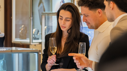 El pasado jueves, en Unión Suiza, nuestras clientas vivieron una tarde única donde el cava y la alta joyería se unieron en una experiencia pensada para lo sentidos. De la mano de Lourdes Sopranis, sommelier y experta en perfumería, exploramos el arte que vincula las complejas notas olfativas y gustativas con las joyas Unión Suiza.